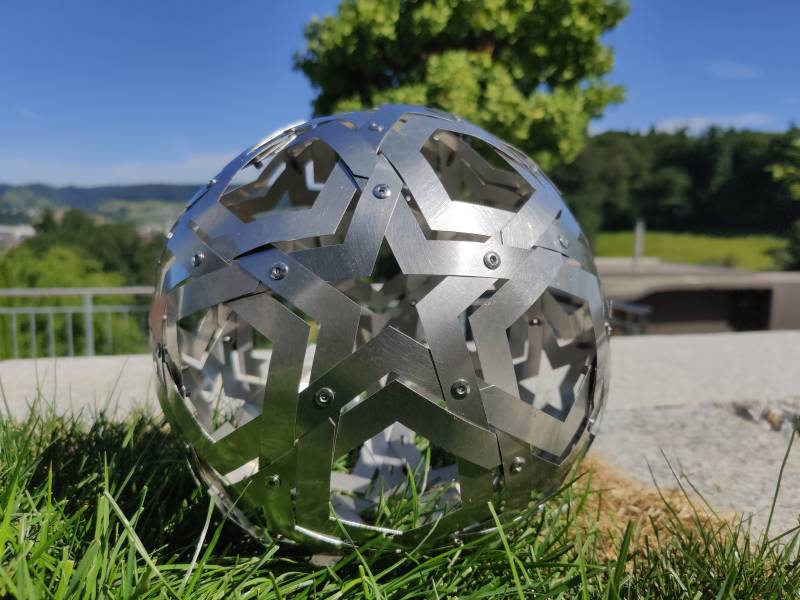 Mit seinen interessanten Eigenschaften eignet sich der Flechtfussball hervorragend als Design-Objekt im innen oder aussen Bereich mit oder ohne Lichteffekt.